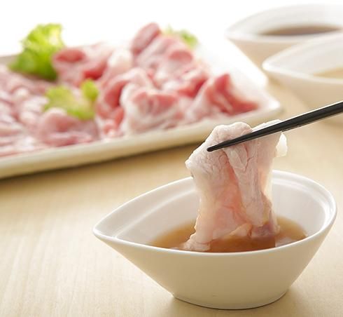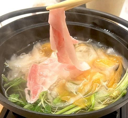 ■創業70年余の老舗とんかつ屋が自信を持ってお勧めするオリジナルブランド豚「三代目まるやま豚」の絶品しゃぶしゃぶ。”脂身が甘い"とはこのこと。