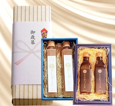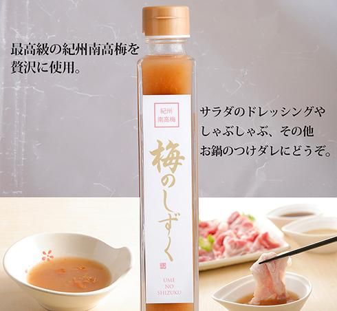 【梅のしずく】梅肉、梅酢、発酵調味料、果糖ぶどう糖液糖、醸造酢、食塩、砂糖、還元水飴、はちみつ、かつおエキス、昆布エキス、発酵エキス、増粘多糖類、調味料(アミノ酸等)