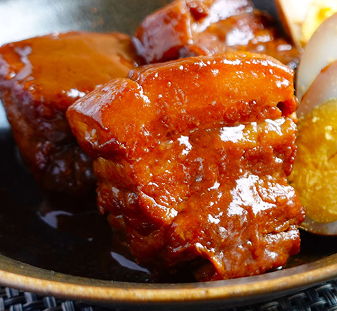 牛肉に負けないほどのうまみ成分を持ち、文字通り脂身が甘くとろける「三代目まるやま豚」を5時間以上じっくりと煮込み、赤味はふわふわ、脂身はとろとろになったところを秘伝の甘辛ダレでしっかりと味付けしたのが、『極上豚角煮』。ご飯のおかずにはもちろん、お酒のお供にも最高です。