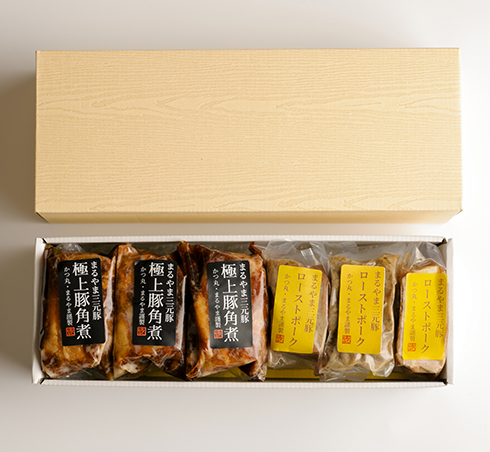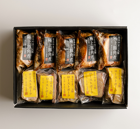やわらか、さっぱり、ジューシーが特徴のまるやま三元豚を材料にした、とろけるほどやわらかな豚角煮と、お肉の美味しさが強く感じられる手作りの美味しいローストポークとの食べ比べをぜひお試しください。