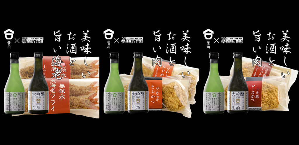 只今当ショップではお取り寄せ用特別コラボ商品として、笹の川酒造様の2種類の冷凍酒とマルズストアの極上豚角煮のセットとしゃぶしゃぶのセットの2種をお取り扱いいたしておりましたが、お客様からの多数のご要望を受けまして、この度「2種の冷凍酒とロースかつ/ヒレかつ/大海老フライ」の3種のお取り扱いも開始いたしました。