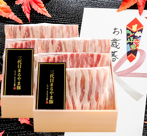並の牛肉を遥に凌ぐうまみを持ち、脂身が甘くとろける最上級の豚「三代目まるやま豚」のしゃぶしゃぶは、もらって嬉しい年末年始のご馳走にうってつけの商品です。